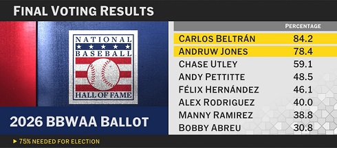 Carlos Beltrán was on the ballot for the fourth time, Andruw Jones for the ninth time.