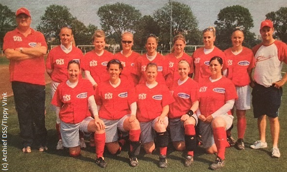 ...Het softbalteam van DSS dat promoveerde naar de... ...Eerste Klasse in 2007; Fred staat rechts... ...Achter: Werner Angermann (Coach), Tippy Vink, Sonja Pannen, Eva Halman,... ...Marit van Opzeeland, Susanne van Kampen, Barbara van de Sanden,... ...Lesley-Ann Hartman, Mieke van Kampen (Team Scorer) en Fred... ...Voor: Vita Angermann, Marinka Gooijer, Marijke van Veen,... ...Jacqueline Wesselink en Stephanie Kensen... (© Foto: Archief DSS/Tippy Vink) |
